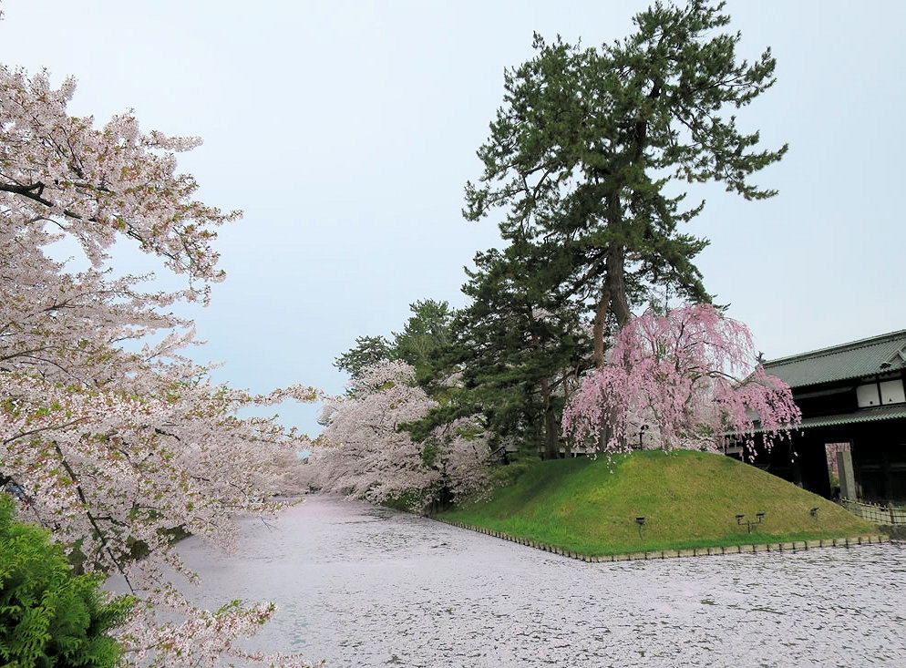 お濠一面花筏です。
