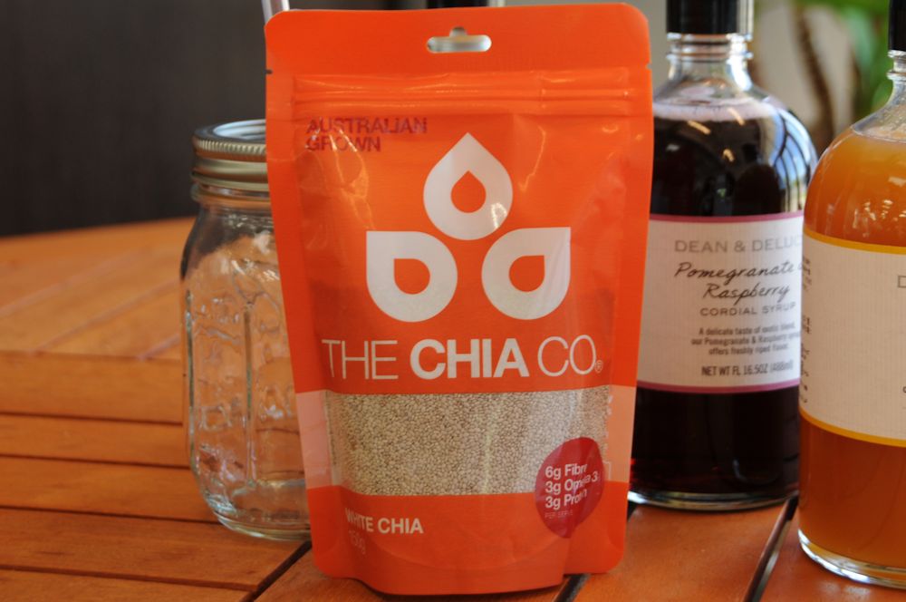 メイソンジャーのボトルに、ホワイトチアシードをDEAN&DELUCAのザクロ&ラズベリー シロップを使って