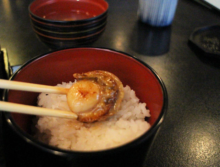 しょうゆ味にこんがり焼いたホタテの照り焼きです。