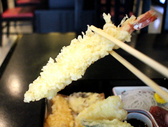 大きなエビの天ぷら!舞茸、シシトウ、イカ、かぼちゃ。