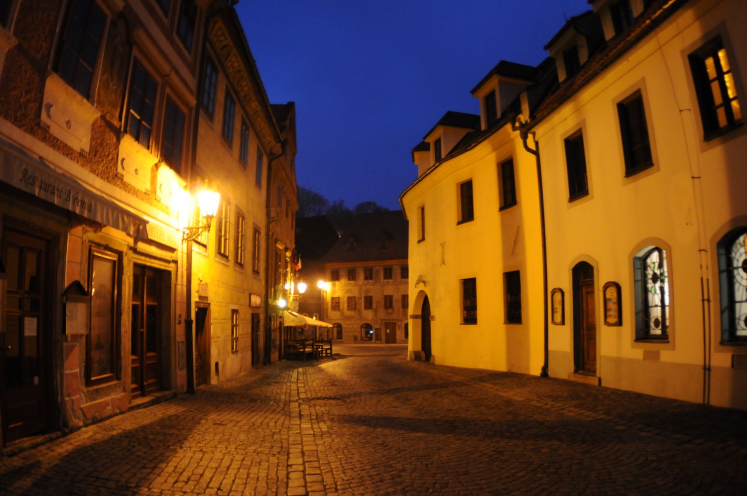 チェスキー・クルムロフ城はライトアップされていて街の灯りも適度で少し薄暗い感じもしますが雰囲気があります。