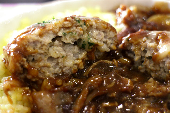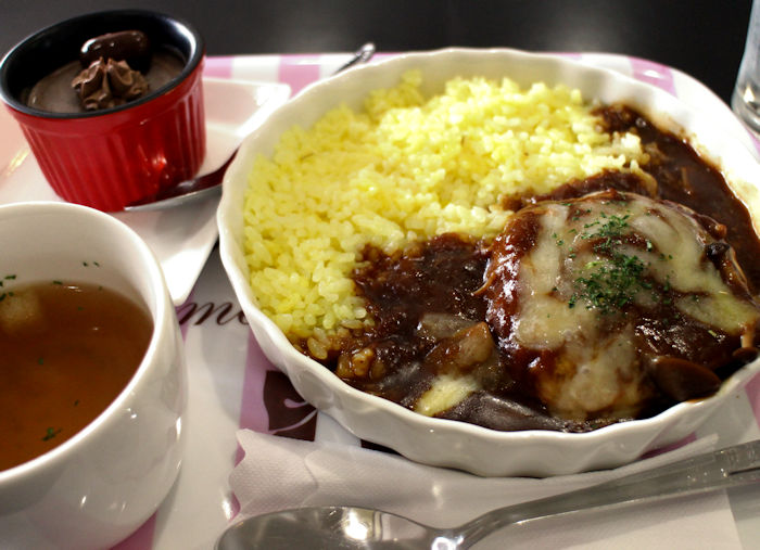 ワンコインメニュー「きのこデミグラスチーズハンバーグ」をいただきました。