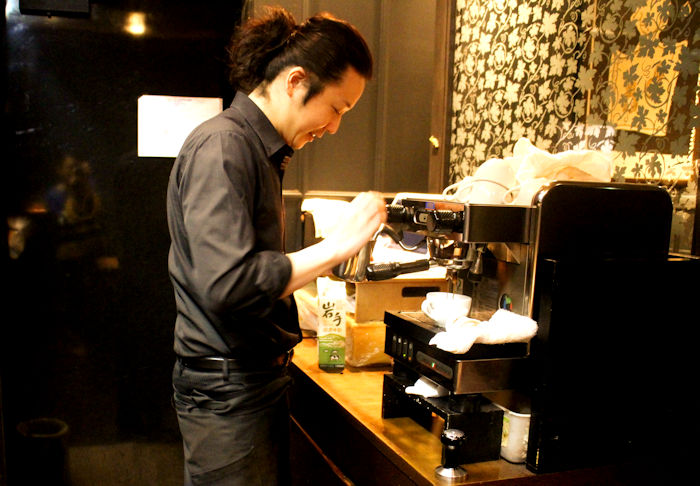むずかしそうです。真剣にラテを入れる千葉さん。