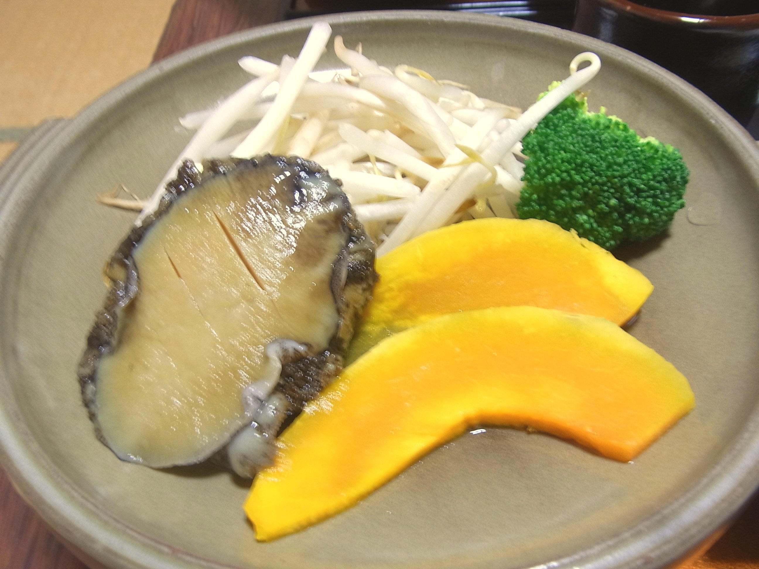 普通、アワビのステーキがつくお料理って、それがメインですよね?