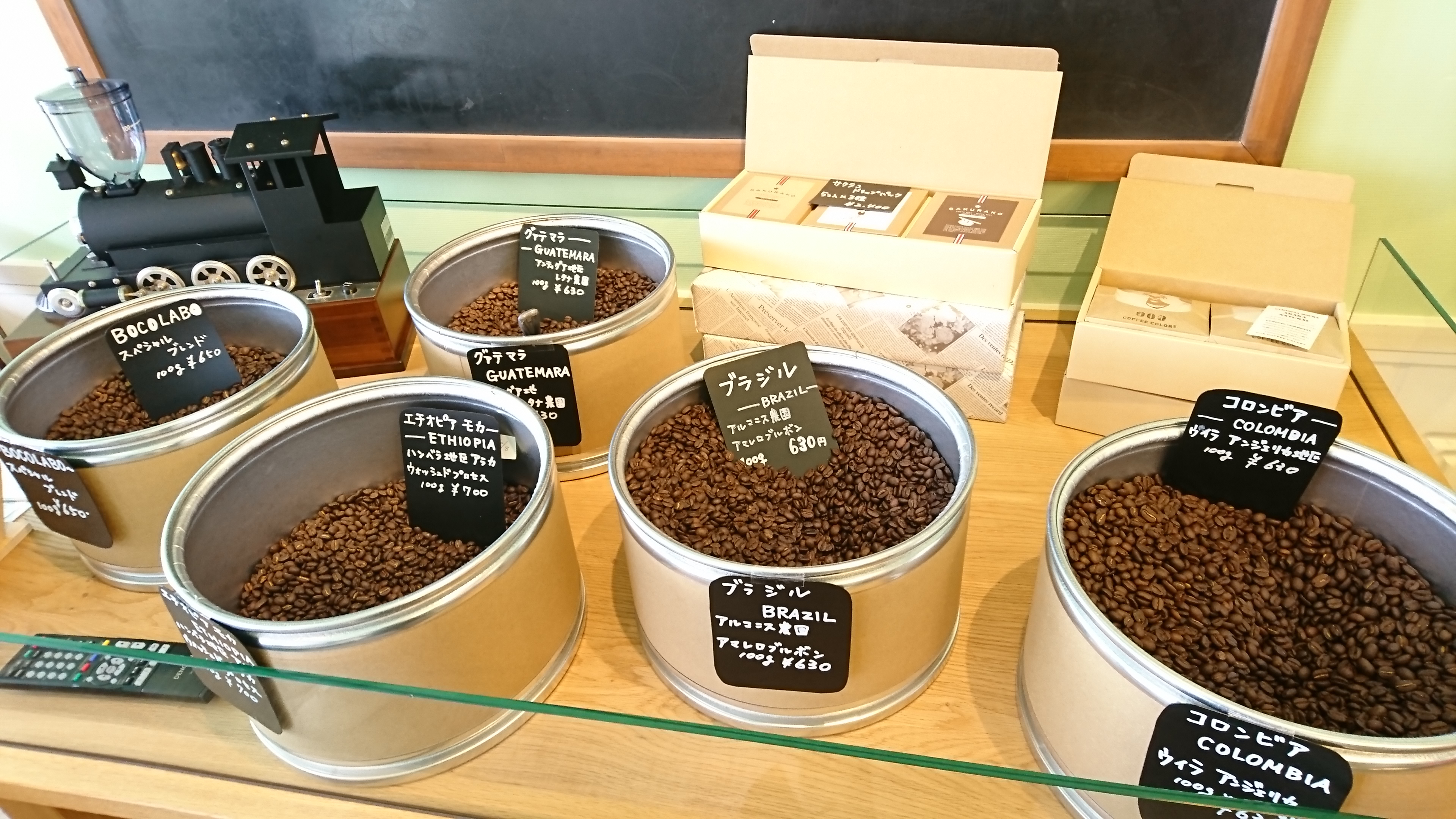 入って右手にコーヒー豆を焙煎する機械が置かれ、ショーケースには様々な
