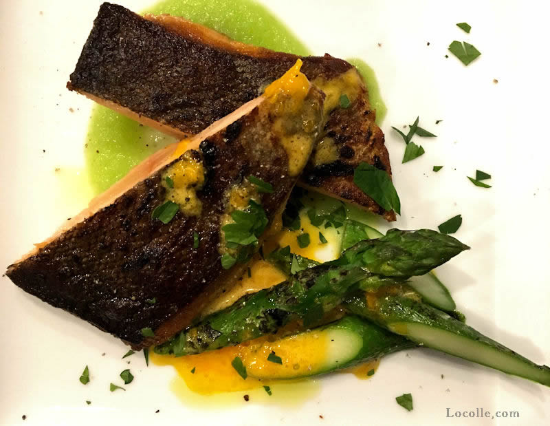 皮目をパリッと焼いたサクラマスは、中心がほんのりレアで身が柔らかく、