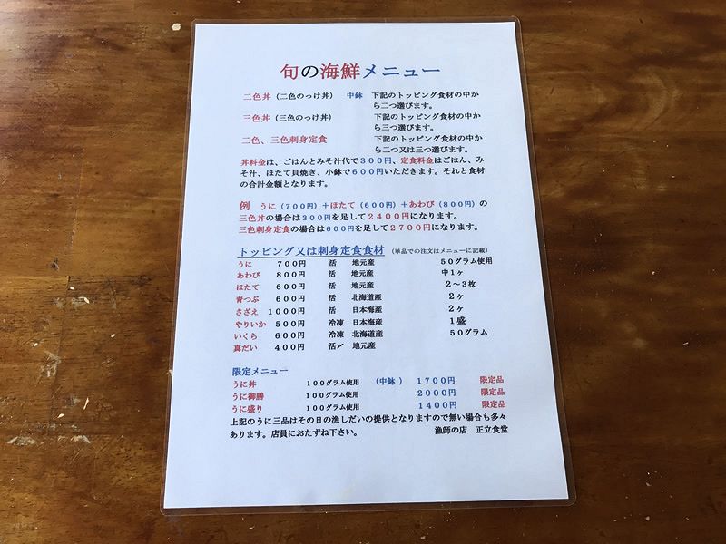 今シーズンはこちらの”正立食堂”でうに始めをすることにしました。