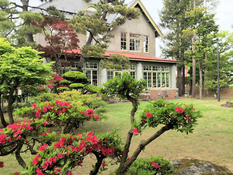 藤田記念庭園は弘前市民会館の前の信号を挟み、ちょうど向かい。