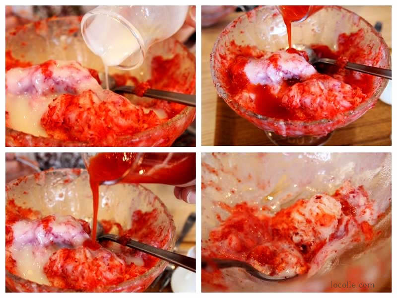 「さちのか」苺100%のシロップを注ぐと、味は更に濃厚に。