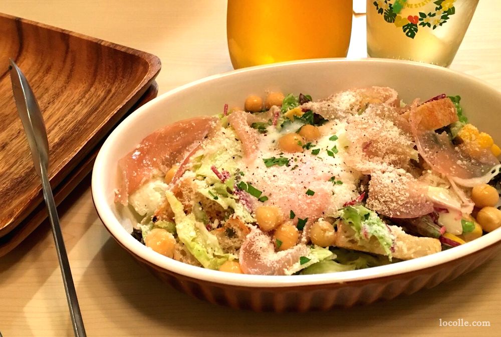 ナポリのシーザーサラダの他の店と違う所はクルトンでなく一口大のバケット。