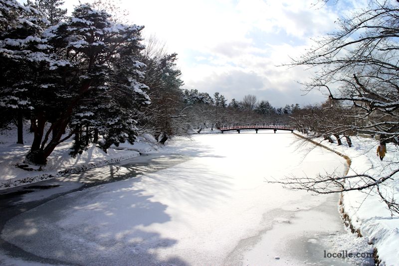 諏訪神社から続く弘前城西堀へ。冬の風景。
