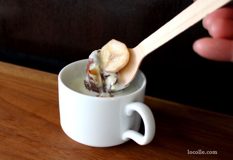 スプーンごと固めたチョコレートをホットミルクに溶かして飲みます。