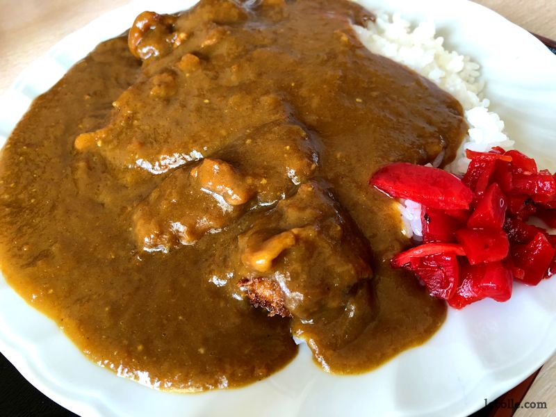 カツカレーはとてもボリュームがありました。大きくて宴会みたいな皿。
