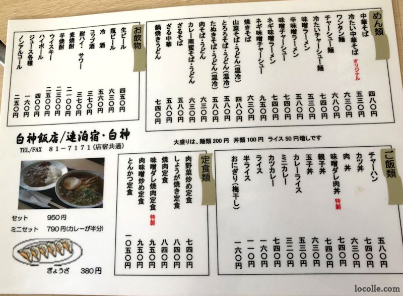 カレー南蛮そば630円・カツカレー740円・餃子(一皿6ケ)380円