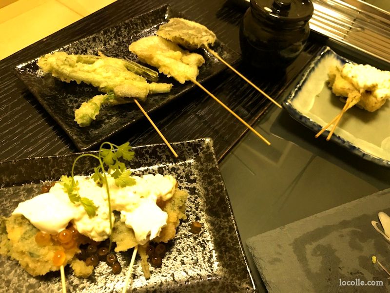 メニュー見て一目惚れしちゃったサーモンいくらクリームチーズ串揚げなるものをチョイース。