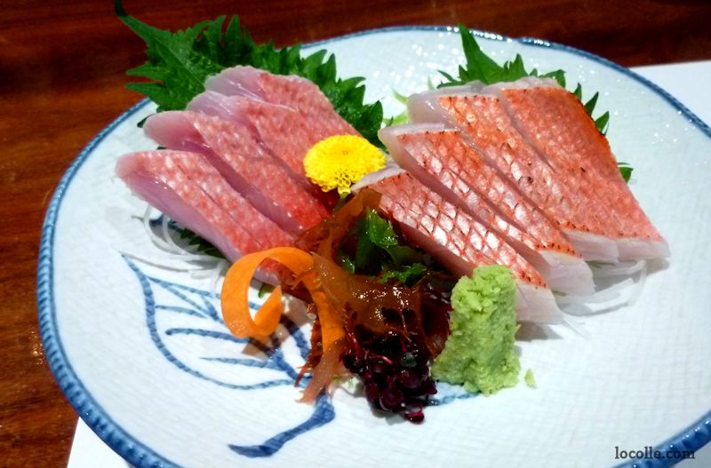 金目鯛のお刺身。生と炙りの2つの味が楽しめます。