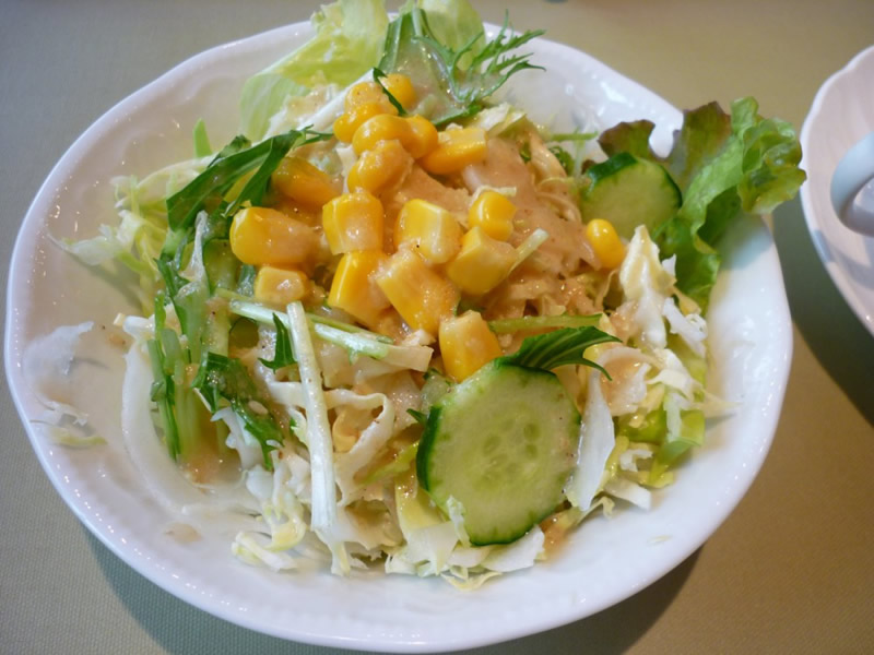 セットメニューには、本日のスープ、サラダ、ご飯かパンがついてきます。