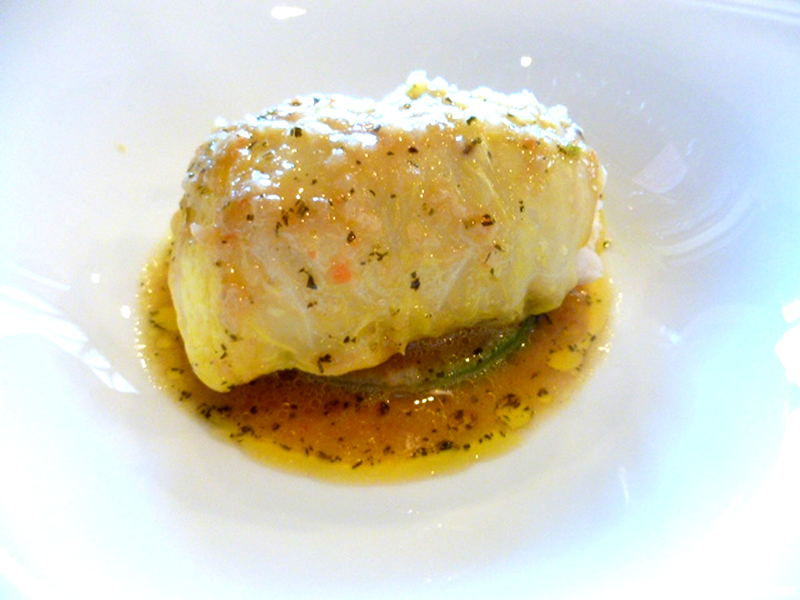 続いてメイン。白菜で包んだ真鯛とムースのバプール。