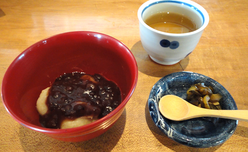付け合せのお漬物を間に入れることで ぜんざいの程よい甘さをその都度感じることができました。