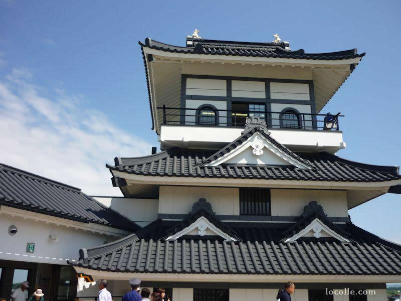 天守閣から田んぼアートをみるとすこし気持ちが大きくなり、城の主として名高い戦国武将を眼下に見ているような感覚に。