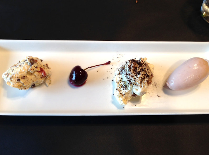 Dolce:本日のデザート盛り合わせ(ナッツアイス・アメリカンチェリーのコンポート・ティラミス・ラズベリーアイス)