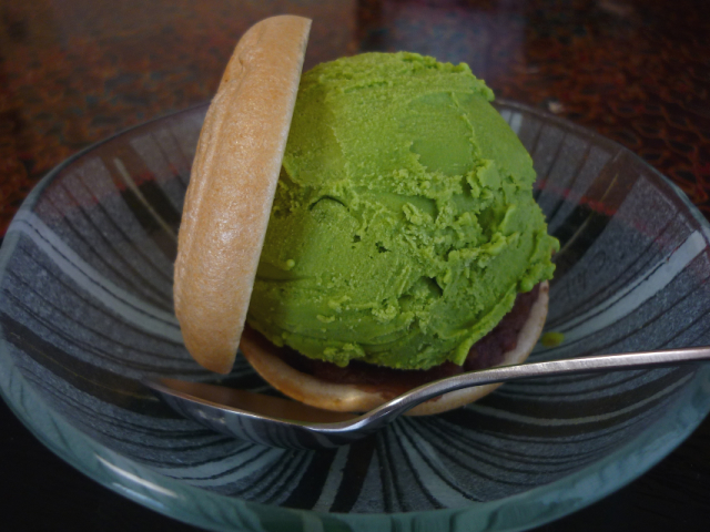 甘すぎない抹茶アイスとあんこ、最中の組合わせが最高でした。