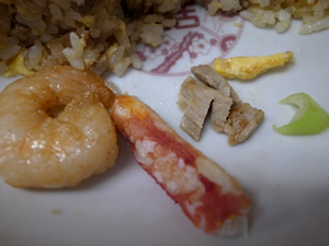 えびとかには大きいのが一つずつチャーハンの上にのっています。