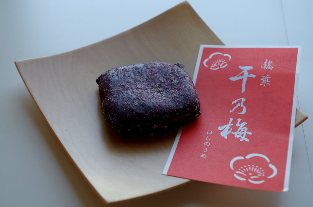 梅としその酸味と周りのお砂糖で甘酸っぱく、中のあんこが優しい甘さです。