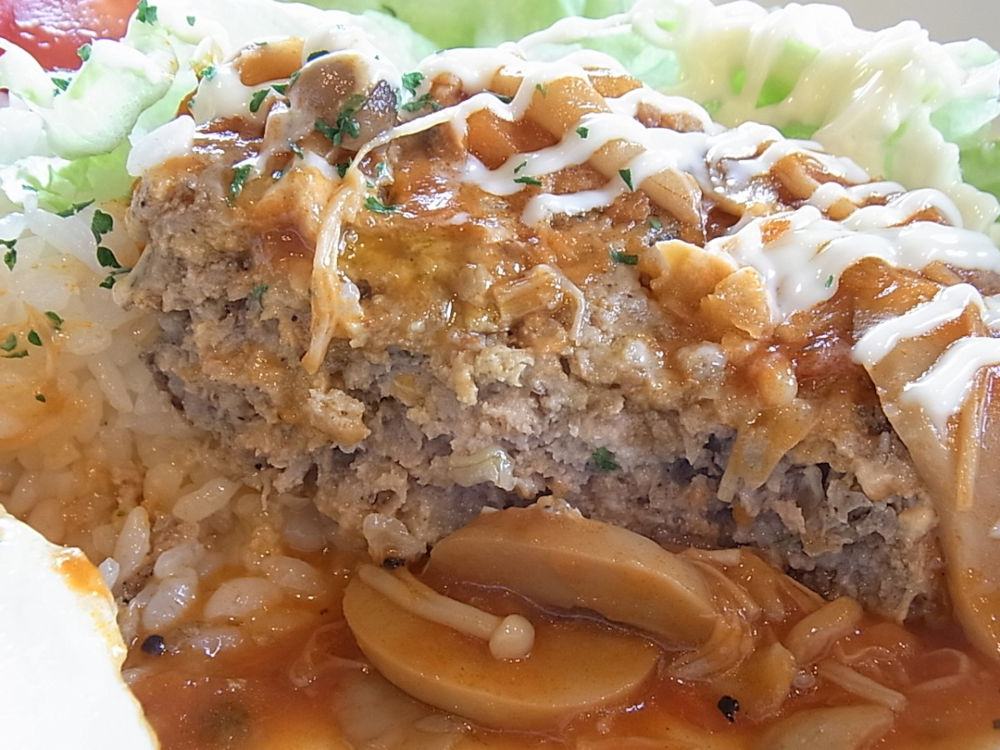 ハンバーグも野菜がたっぷり刻んで入っていてヘルシー。