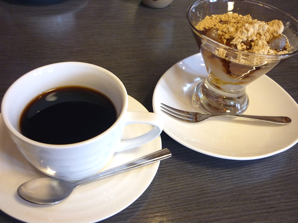 食後に定食にセットになってるドリンクと、別注文でわらび餅を頂きました。