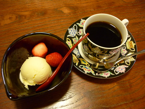 今日はコーヒーを、デザートのバニラアイスと一緒にいただきました。