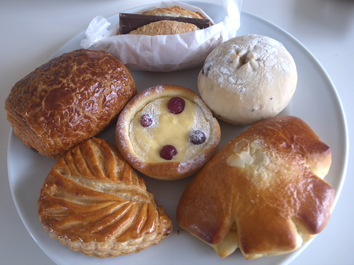王道のクリームパン、アップルパイ、チョコレートや、クリームチーズが入ったパン…