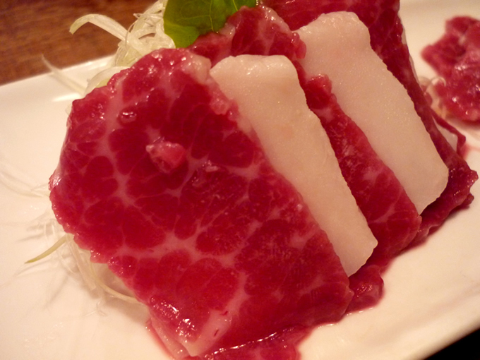馬肉と一緒に添えられた、白い「たてがみの脂」。