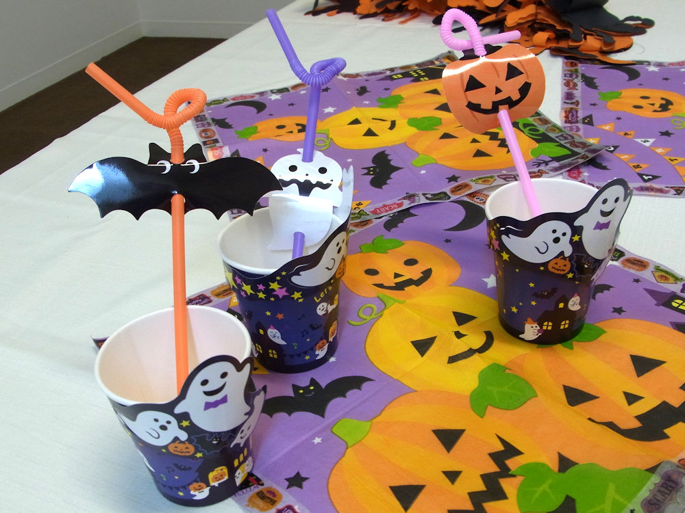 ストローにもカードを通してハロウィンらしさが出せたりします。