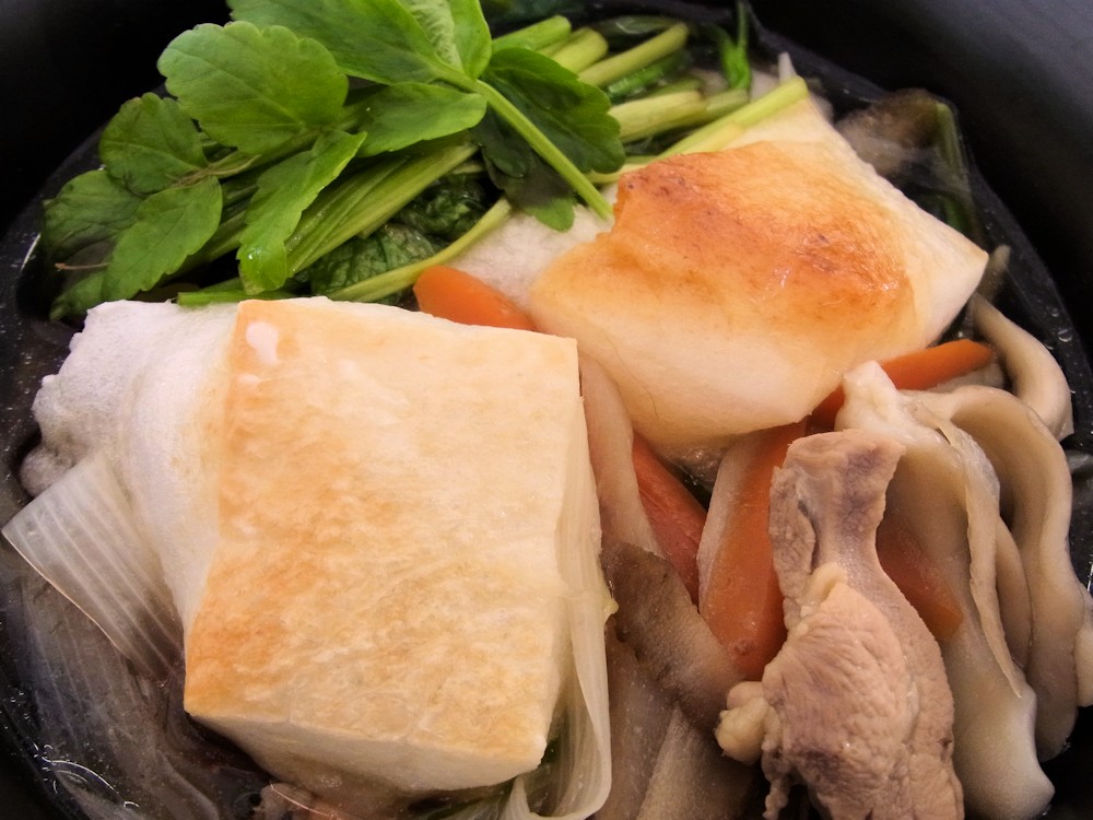 作ったもち巾着は冷凍しておいて、使用前に油抜きをしてから使いましょう。