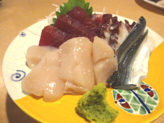 お刺身はマグロ、ホタテ、コハダ、タコの4点盛り。