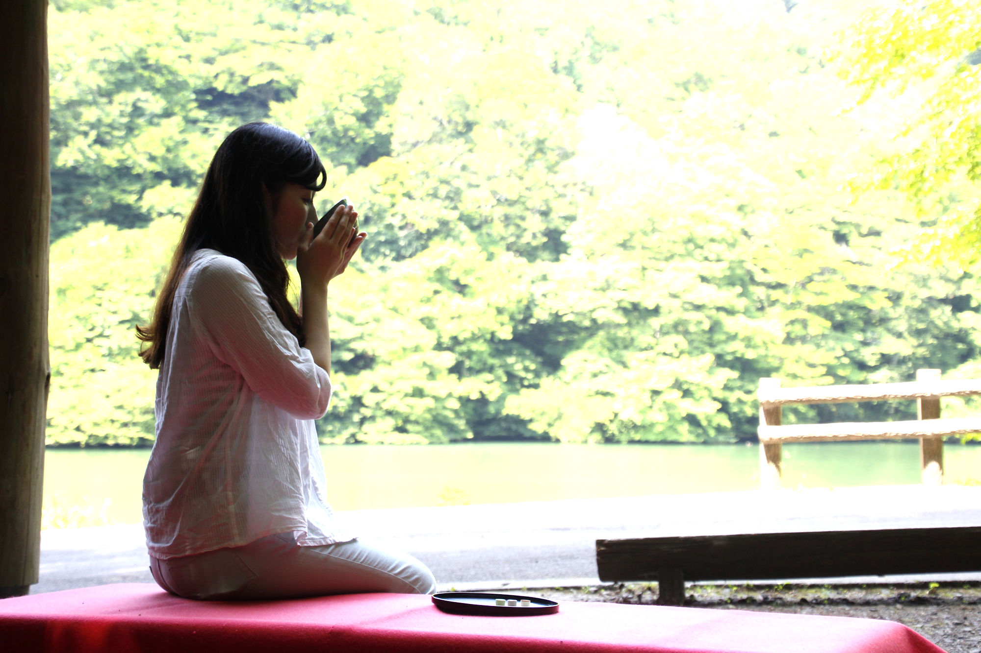 十二湖庵では、湧き水で淹れた抹茶を飲ませてくれます。