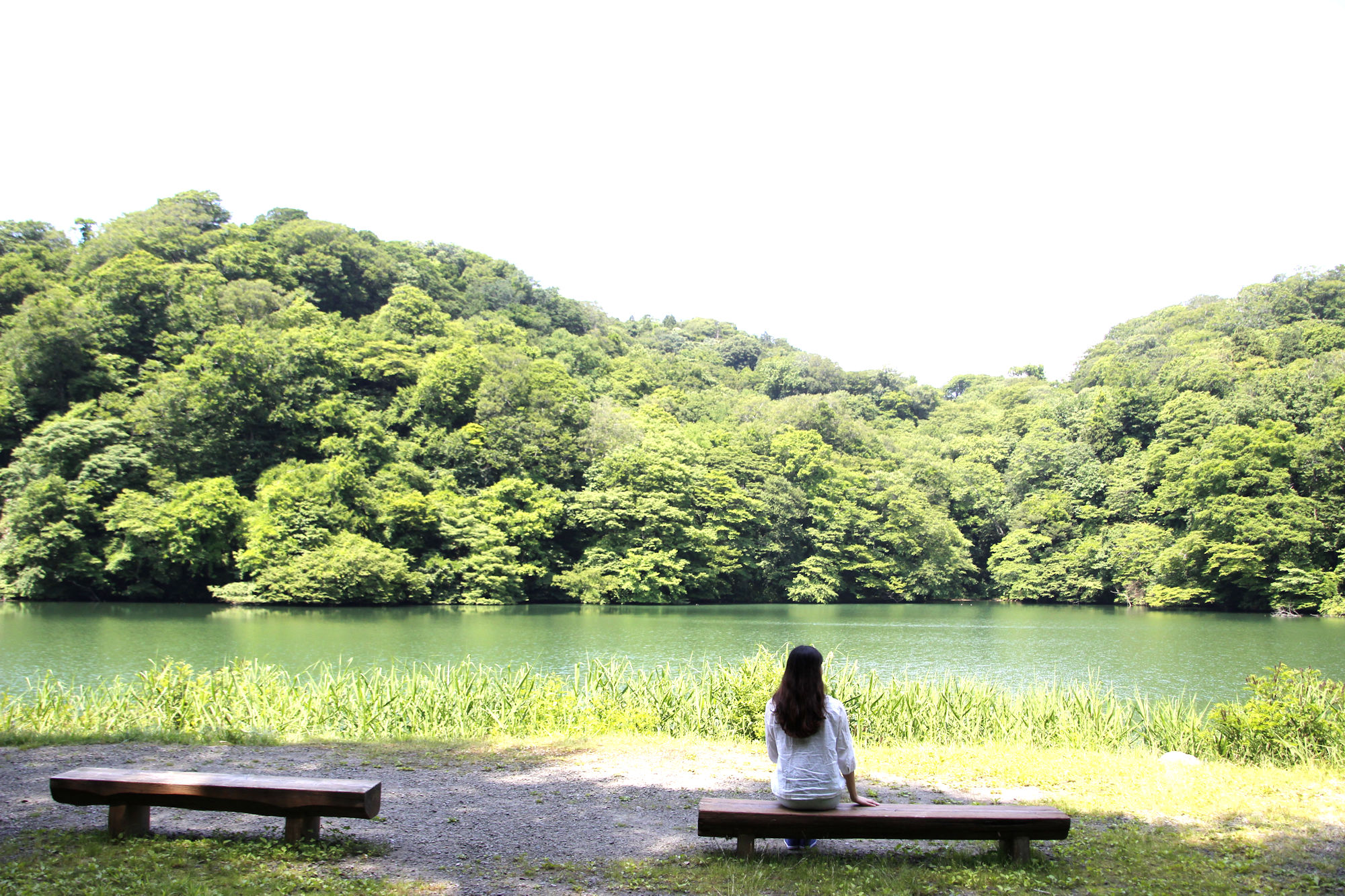 青池よりもややグリーンがかった色で透明度が高く、その場を離れられない美しさです。