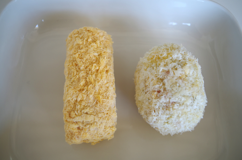 平井精肉店のオランダコロッケを まずは揚げる前の状態で比較。
