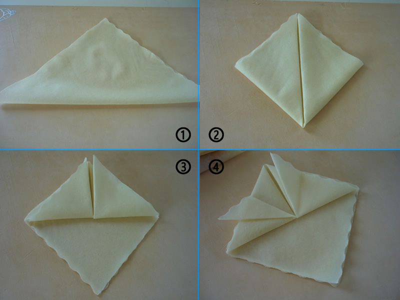 折り曲げた所を、水で溶いた片栗粉でくっつけると崩れにくいです。