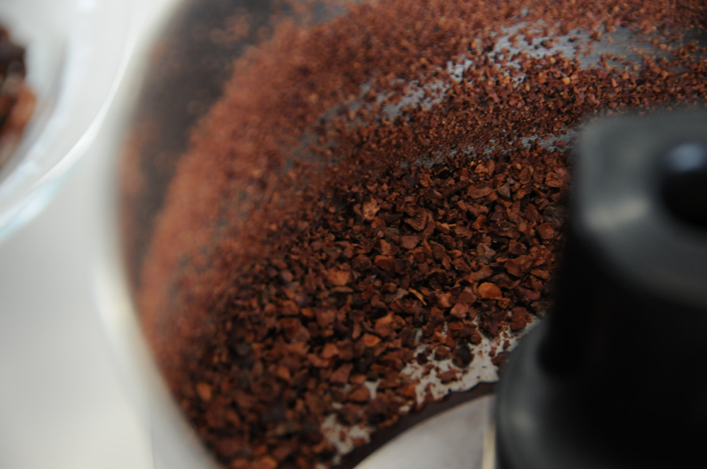 カカオ豆をフードプロセッサーにかけて細かくしていきます。
