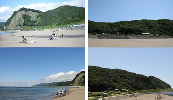 海水の透明度が高く、きれいな砂浜が広がる小泊・折腰内海水浴場。