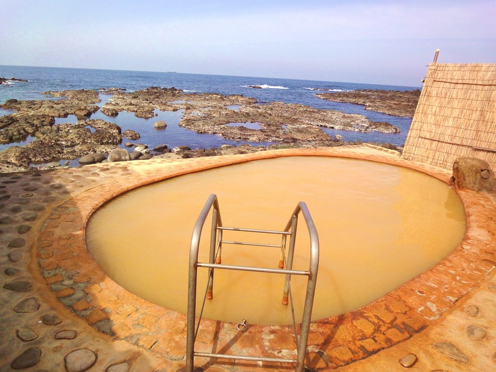 大浴場で体を洗い流したら、いよいよ海辺の露天風呂へ向かいます。
