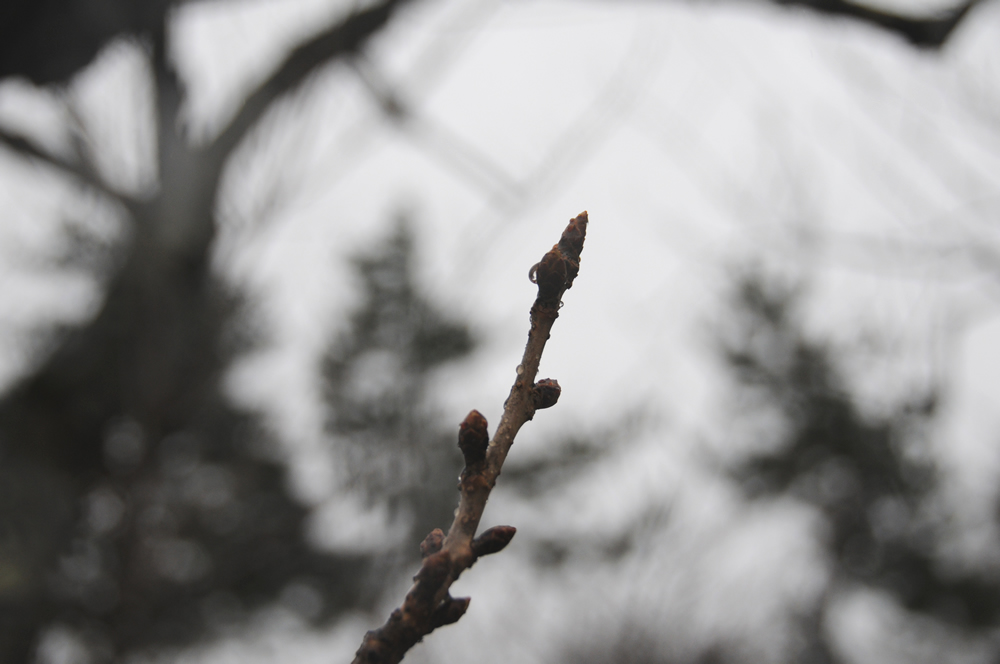 染井吉野(ソメイヨシノ)の芽はまだ小さくほっそり。
