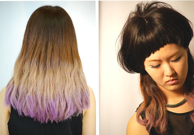 毛先にビビッドなバイオレットをアクセントにしました。