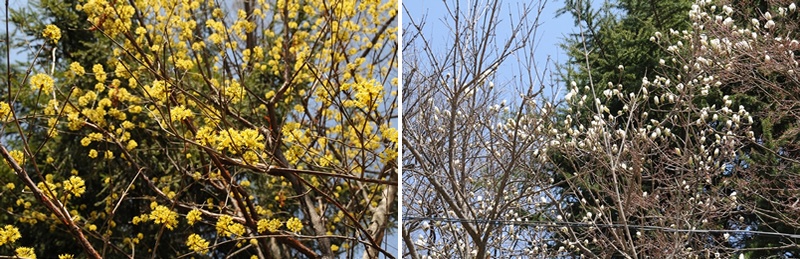 桜の開花まではあと1週間ほどありますが、園内でかわいらしい花を咲かせている木々に出会いました。