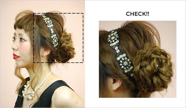髪の長さが足りない方や、レイヤーが入っている方は、もう少し編み込みを崩してボリュームを出し、ふんわり感を出してあげるとGOODです!!
