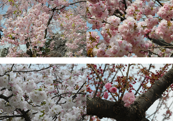ヤエベニシダレや東錦など、八重系のさくらが見ごろを迎えています。