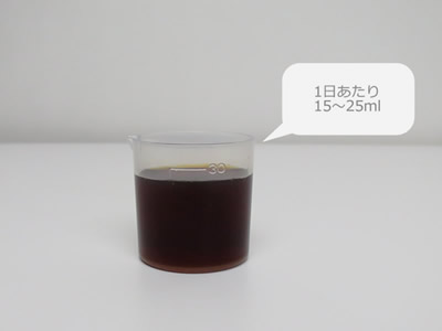 量は1日15mlから25mlが目安で、1日15mlとして1本で33日分。